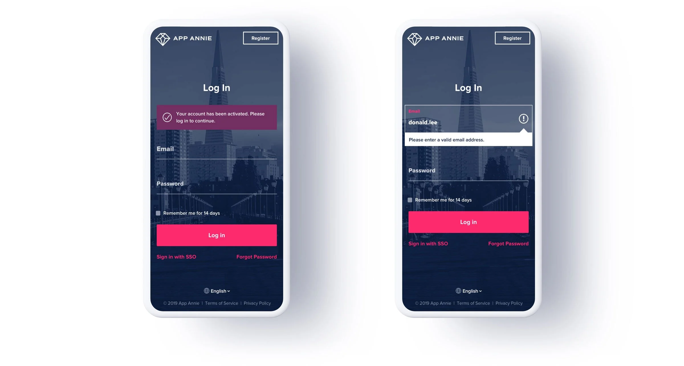 App Annie SaaS login experience